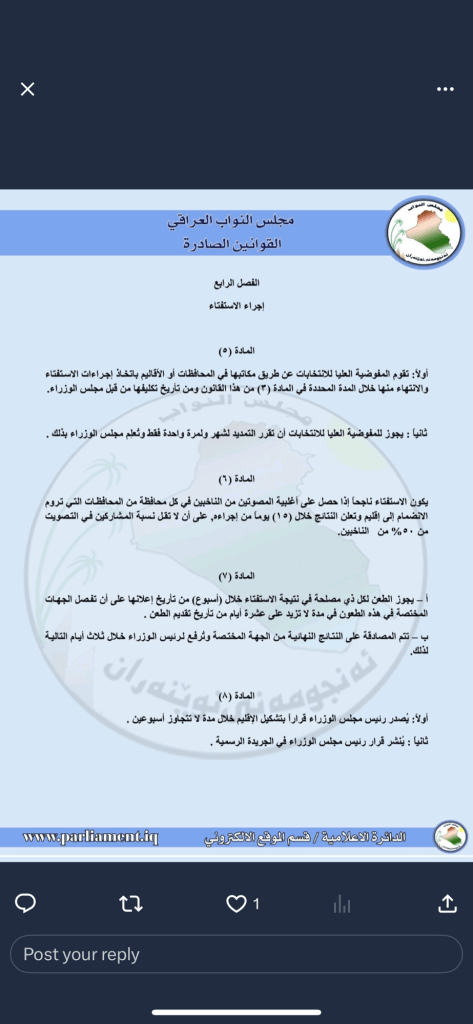 ثانيا موضوع الانتخابات التى تسمى ديمقراطية تعشقها الأحزاب والميليشيات ويكرهها الشعب ولعل آخر استطلاع كان ٧٢ بالمية مع الأقاليم استطلاع شهر تموز